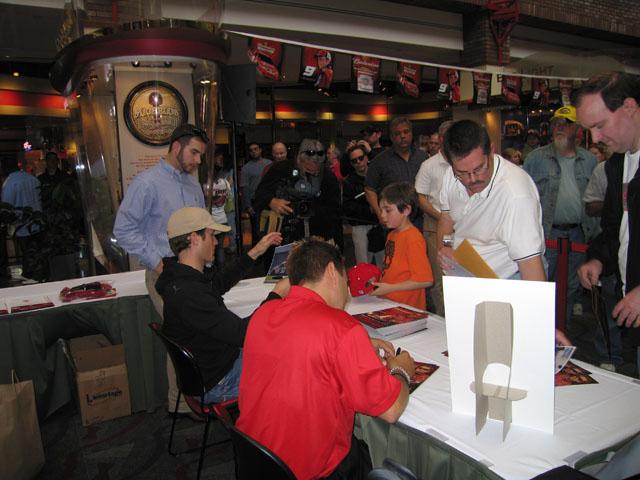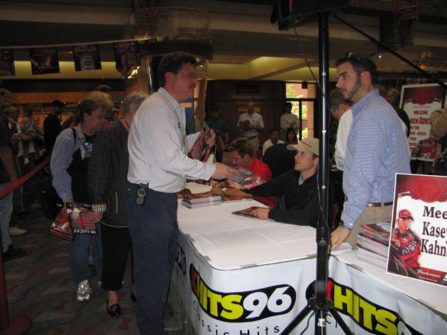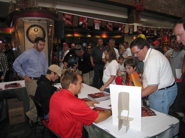 Kasey Kahne and Brandon sign autographs at the Anheuser-Busch Tour Center, April 30 prior to the NHRA event at Gateway Raceway